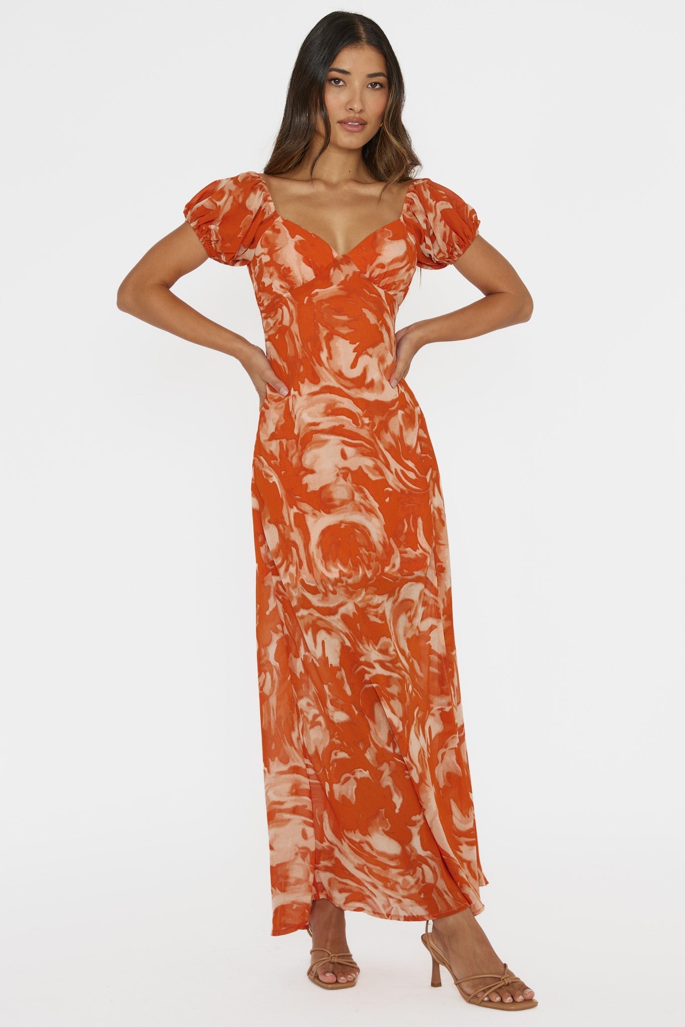 Dress to impress in our gorgeous Park Avenue midi dress. Featuring feminine puff sleeves and a pretty print, it's perfect for a wedding or special event! Team it with kitten heels and a clutch for the ultimate It Girl look.