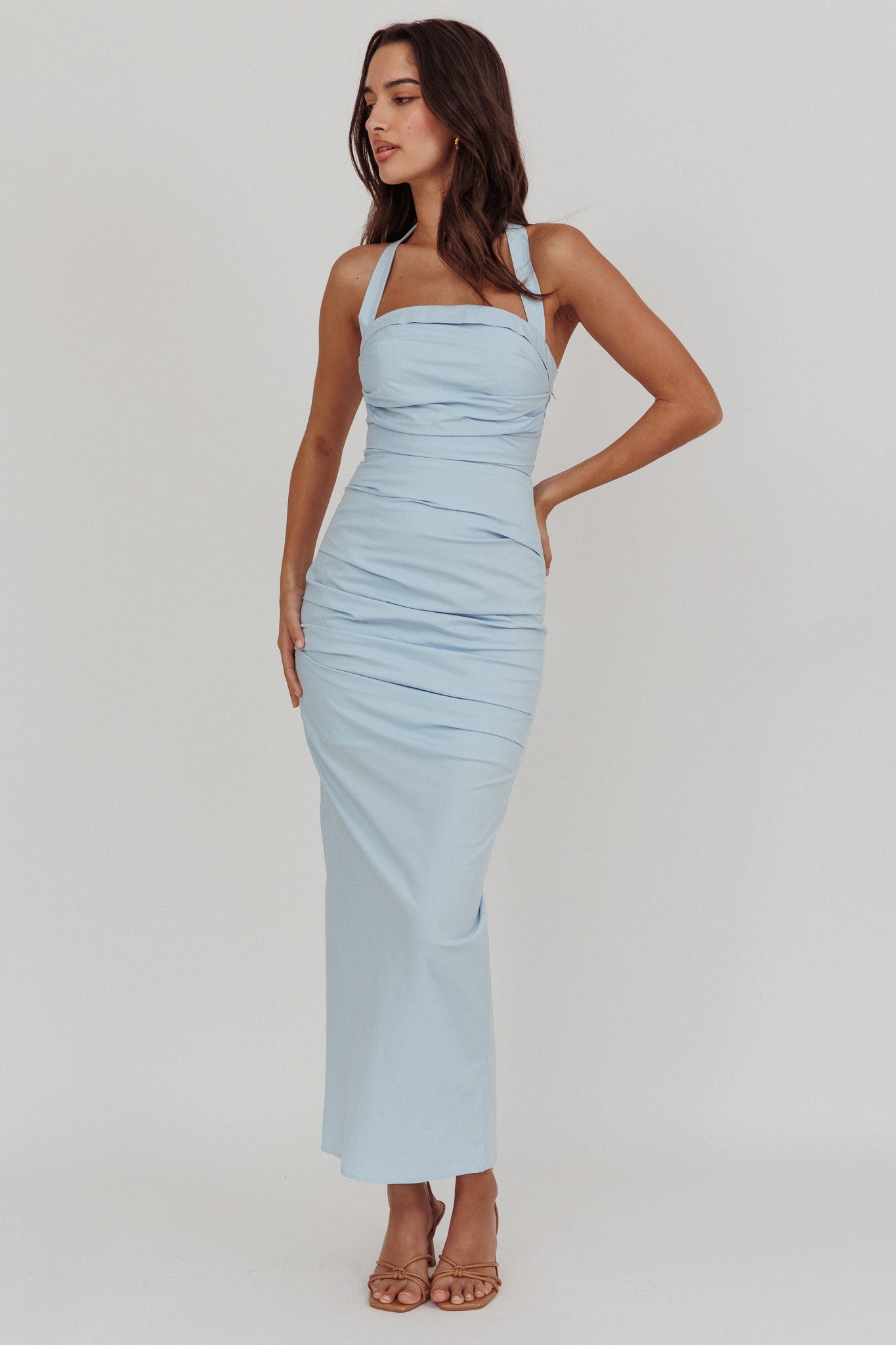 Step into your It Girl era in our gorgeous Scout maxi dress. It features a halter neckline and ruching detail in the sides and is perfect for a girls' night out or a special birthday celebration. Team it with strappy, nude heels and chic gold hoops for a super hot look.