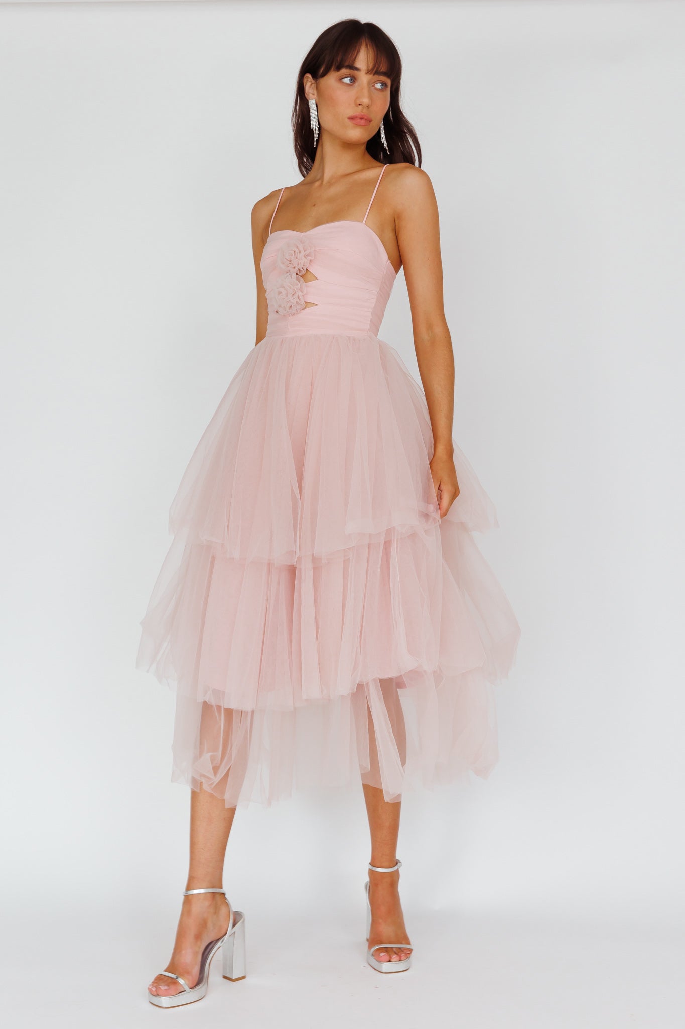 Make your grand entrance in our Seraphina midi dress. We are in love with its layered tulle skirt and rose decoration in the bodice. Perfect for a garden wedding or special birthday celebration. Team it with diamante heels and a satin clutch for a look we are loving.