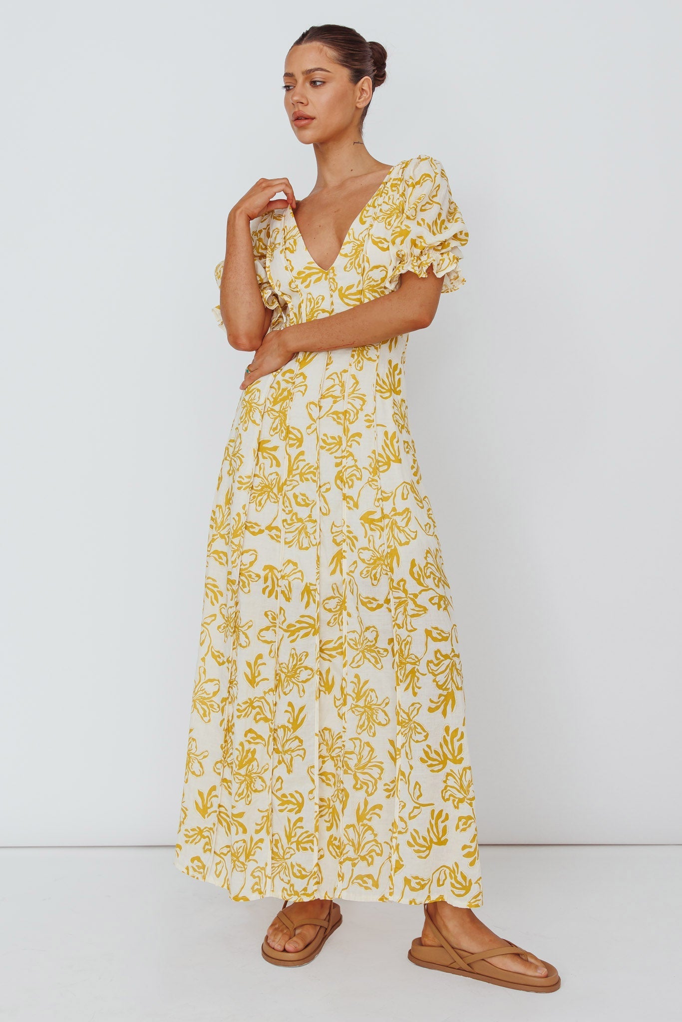Twirl the day away in our dreamy Sitting Pretty maxi dress. Featuring puff sleeves and pintuck pleat detail. It's perfect for weekend brunch with your girls. Team it with tan mules and a saddle bag for a chic look we are loving.