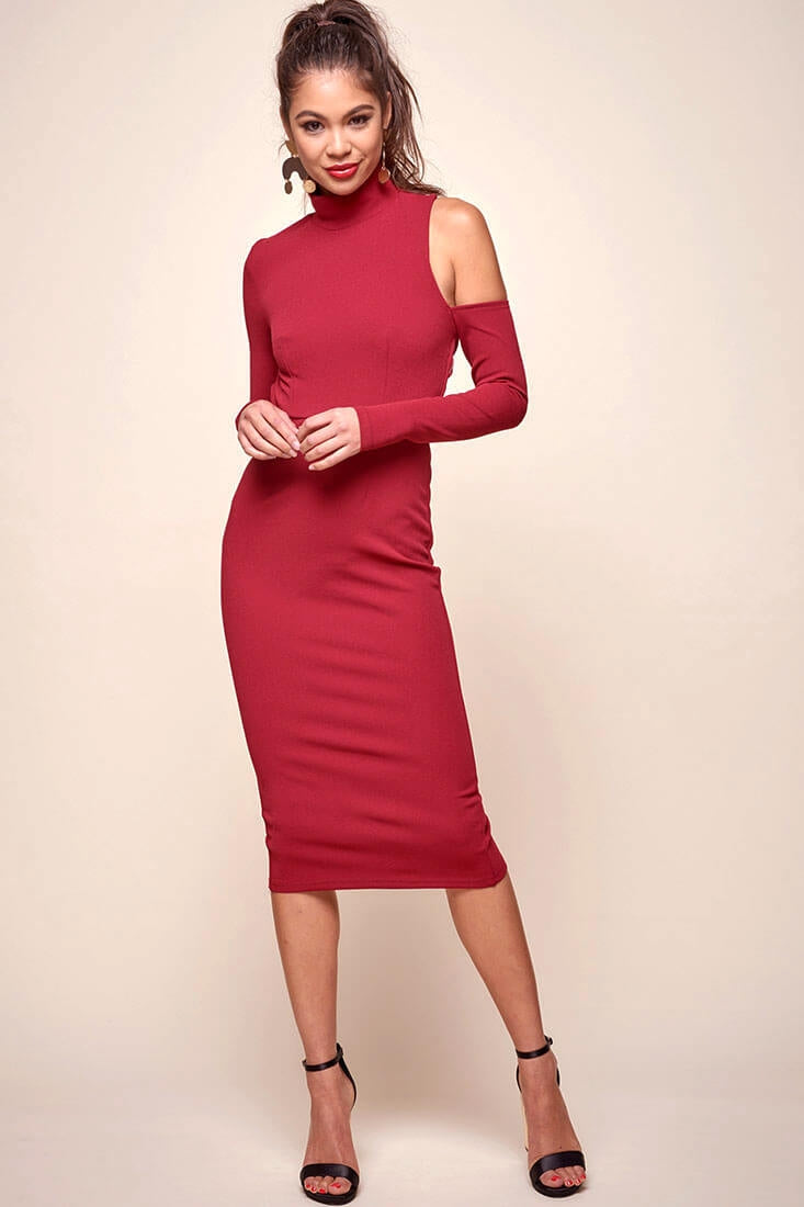 This racy, long sleeved bodycon features sexy cutouts along the back and side. Perfect for a rooftop bar on a breezy night. Pair with a black statement heel and a bold red lip.